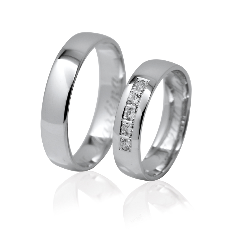 Nejvýraznějším prvkem těchto snubních prstenů je pět kamenů v dámském modelu, které rozhodně upoutají pozornost. Prsteny jsou příjemně lesklé a díky tomu skvěle padnou na prst každé nevěště i ženichovi.